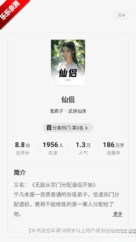 2、挑选目标小说:发现感兴趣的小说后,点击进入详情页面,在这里能够查看作品信息、读者评价等有助于决策的内容。