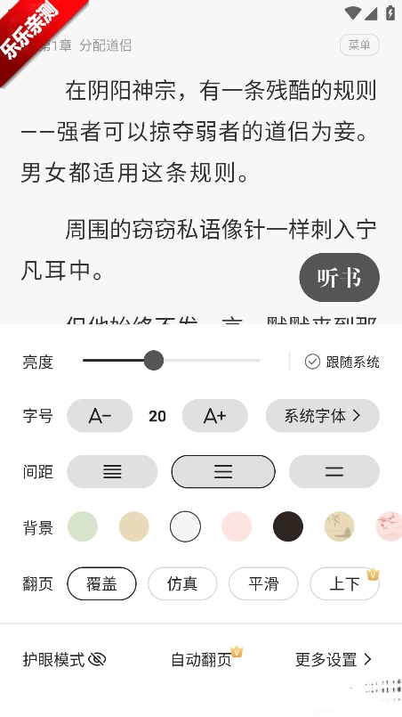 6.可依据个人偏好对字体大小、背景颜色、亮度等进行调整,并挑选适宜的阅读模式,如夜间模式、护眼模式等。