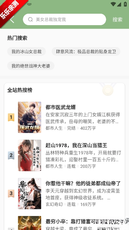 2.利用顶部的搜索框输入小说名称,即可快速定位到自己想阅读的小说。