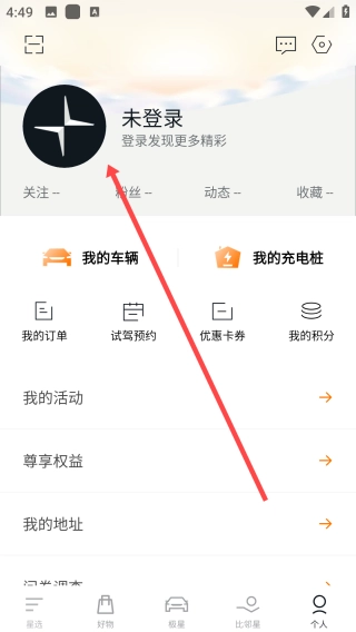 打开Polestar极星,点击【个人】
