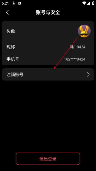 在“账号与安全”页面,能够查看头像、昵称、绑定手机号等相关信息,同时也可以执行注销账号、退出登录等操作。