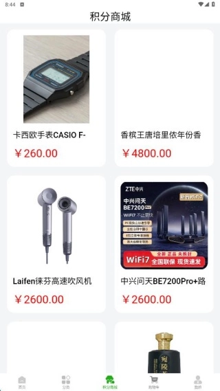 3、积分商城页面展示着最新福利,您可用积分兑换各类好物。