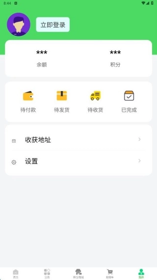 5、“我的”页面具备登录功能,用户登录后可查看账户信息、积分余额,还能同步查看订单状态。