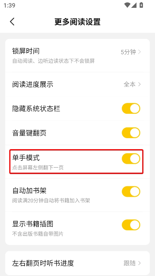 七猫小说怎么开启单手模式