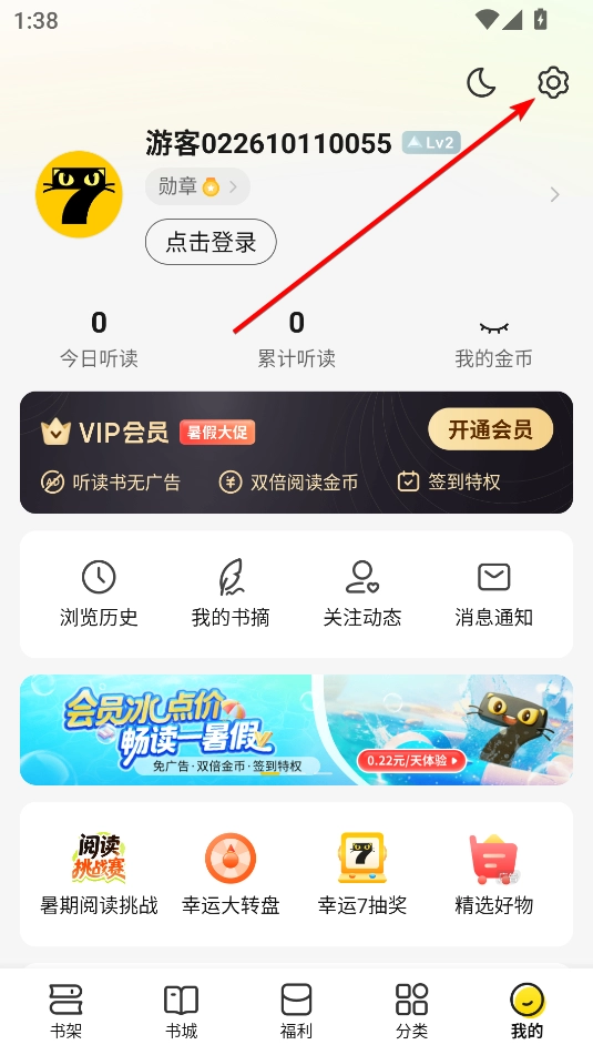 打开七猫小说应用,进入“我的”页面,点击右上角的齿轮图标