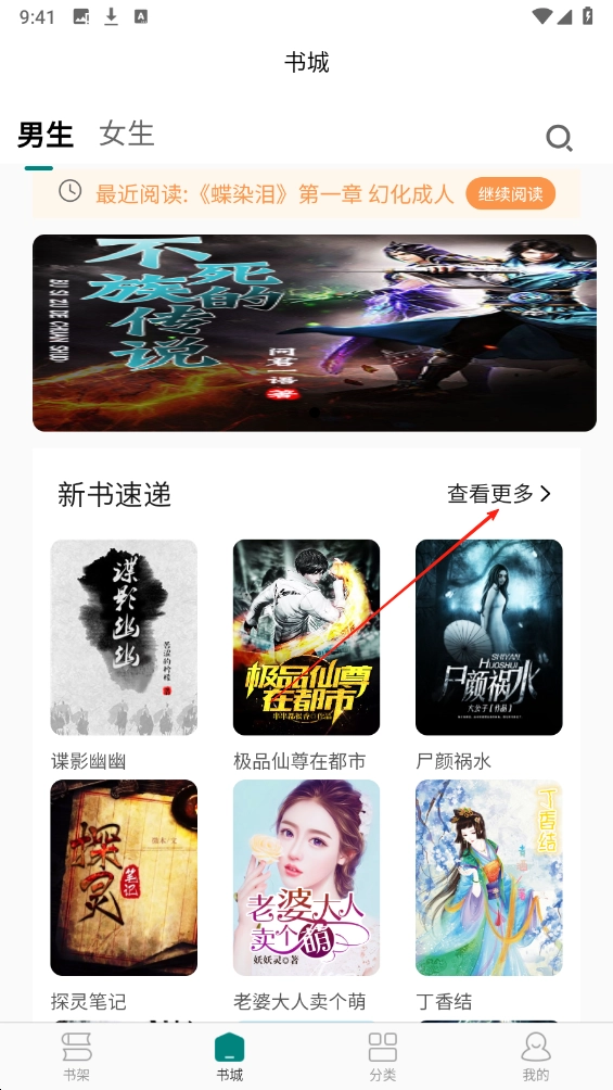 书城页点击【查看更多】,进入新书速递列表页。