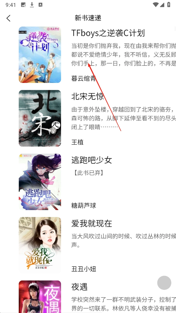 新书列表选择【喜欢的小说】,进入详情页。