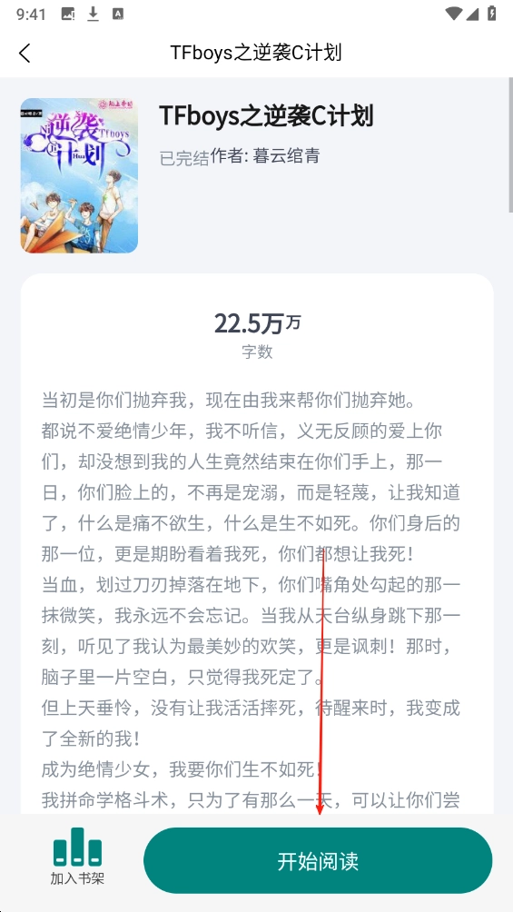 详情页点击【开始阅读】,开启小说阅读之旅。