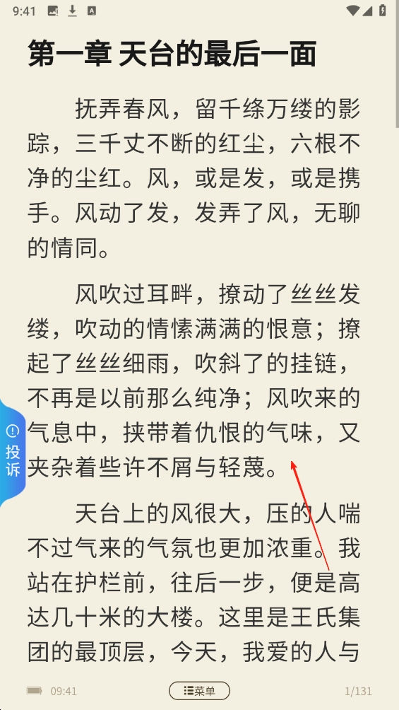 在阅读页打开【第一章内容】,就能沉浸到小说情节里。