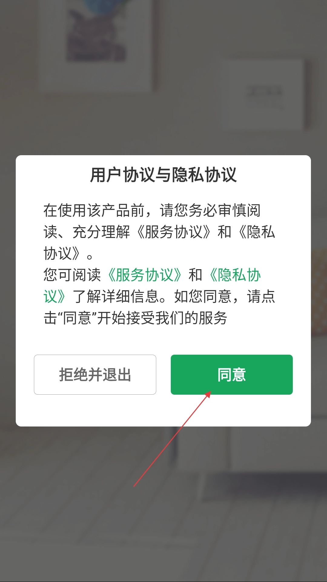 进入用户协议与隐私协议弹窗中点击【同意】按钮。
