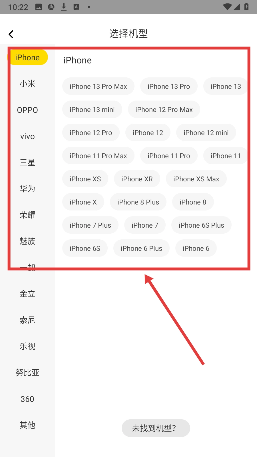 在首页点击底部的【我要DIY】按钮,即可进入机型选择页面。