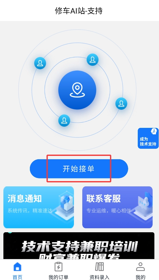 当“接单中心”切换至接单模式时,系统会自动向其智能推送周边的车辆维修需求订单。