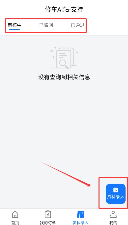 在“资质认证”环节,需要上传维修资格证书等相关文件,并且可以实时查看审核的进展情况,包括审核通过或者被驳回的状态。