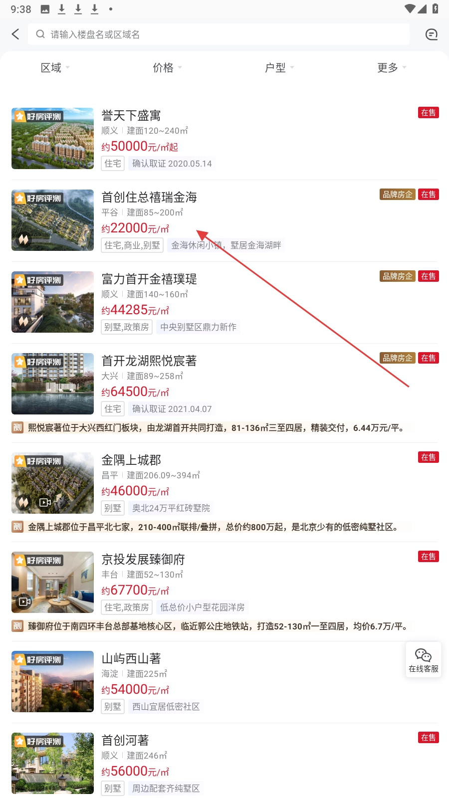 在楼盘列表里,找到你感兴趣的楼盘,比如【首创住总禧瑞金海】,然后点击它。