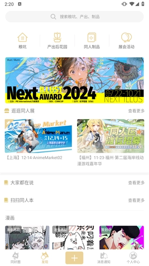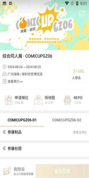 打开软件后,能看到不少同人展的信息,喜欢漫展的用户可以在这里直接购票。