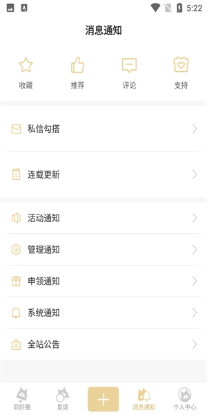 消息通知支持查看私信、更新、活动等内容,同时也能查看各类通知以及广告。