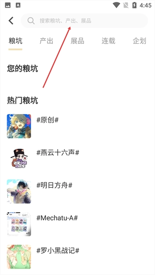 在粮坑页面点击顶部的搜索框,输入关键词来查找想要的粮坑。