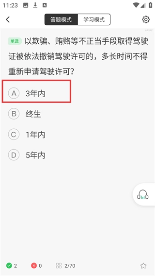 继续进行【时间题】的作答,现在的题目为“通过不正当手段获取驾驶证被撤销后,多长时间内不得重新申请”,请选择【3年内】这一选项来完成本题,以此积累答题进度。