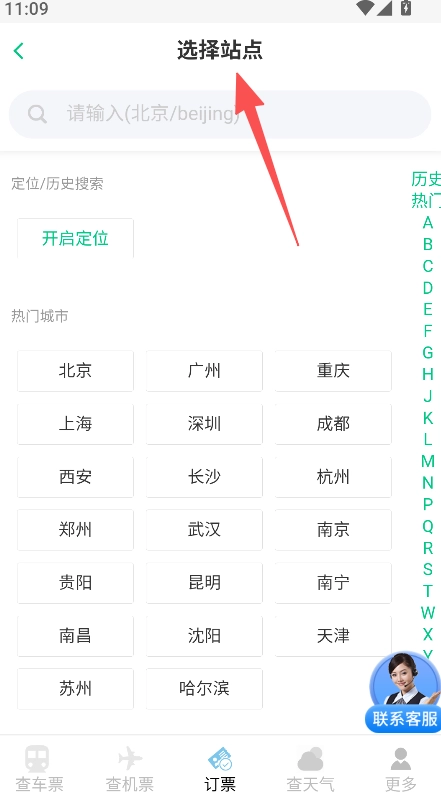 站点选择功能整合了搜索入口与热门城市入口,能够快速匹配出行站点,从而提升票务查询前置操作的效率与便捷性。