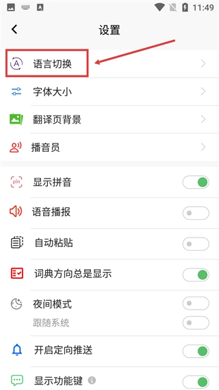 进入【设置】页面,找到【语言切换】选项并点击。