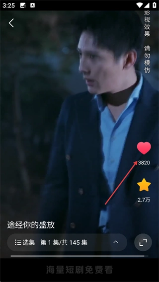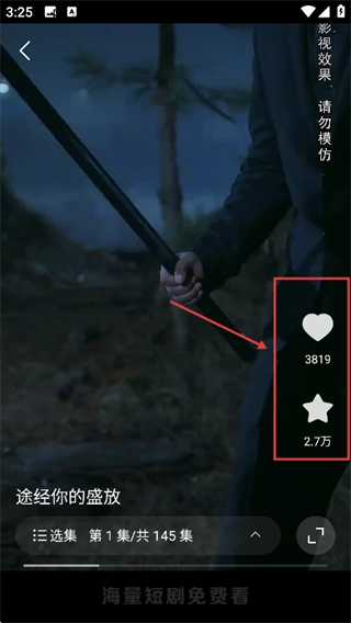 在短剧播放页面,可以点击右侧的点赞和收藏图标。