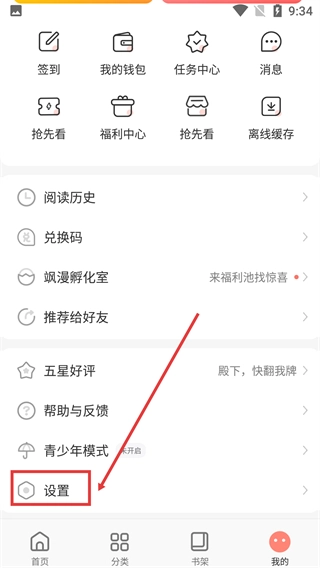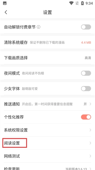 进入【设置】页面,找到【阅读设置】选项并点击。