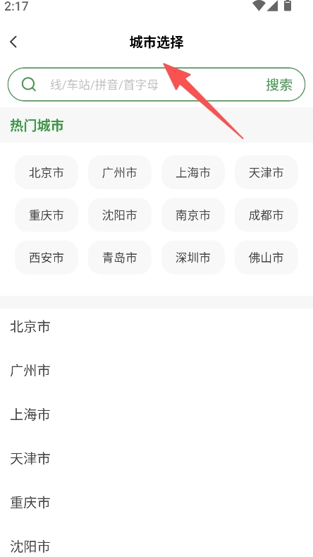 打开软件进入城市选择页面,选择目标城市。