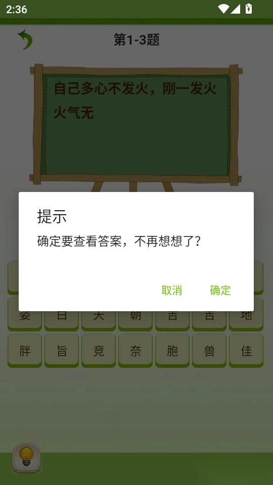 3.在答题界面中,点击左下角的“灯泡”功能按钮,即可进入下一步操作。