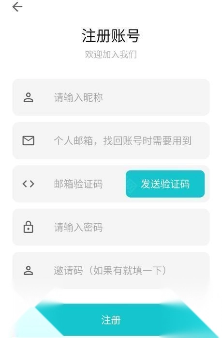 4、按照要求填写昵称、邮箱、验证码和密码就可以了,邀请码可填可不填。