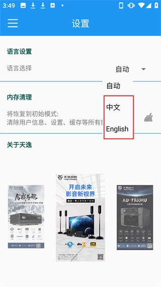 在打开的语言选项里,挑选【中文】或者【English】,就能完成应用语言的切换配置。