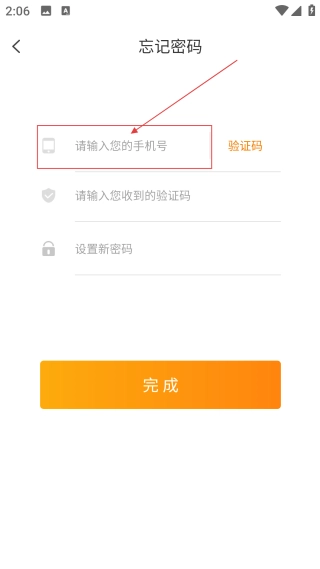在忘记密码页面,填写手机号,以便获取验证码来重置密码。