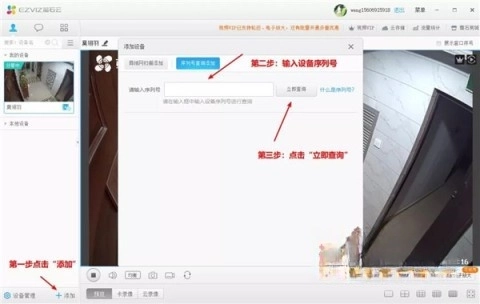 1、请先打开萤石工作室PC客户端,注册账户并输入设备序列号(9位数字)。