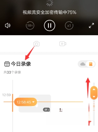 3、在设备下方区域,你可以滑动滑块来浏览回放内容,也能点击“今日录像”按钮切换至不同日期查看。