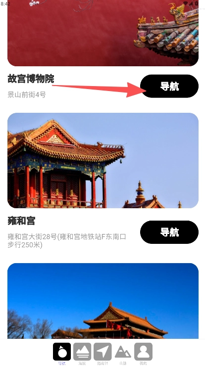 可以在搜索页面输入像“故宫博物院”这样的目标地点,也能从历史记录里挑选地址。
