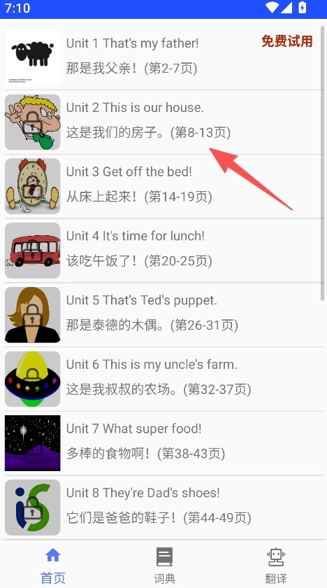 挑选相应的单元,例如“Unit 2 This is our house”。