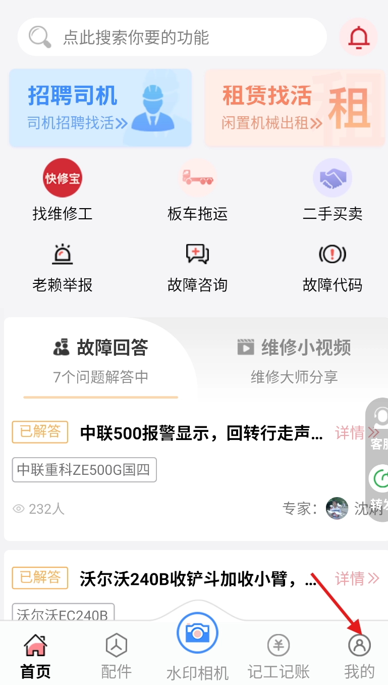 打开51机械应用,进入主界面后,轻点屏幕右下角的“我的”选项,即可进入个人页面。