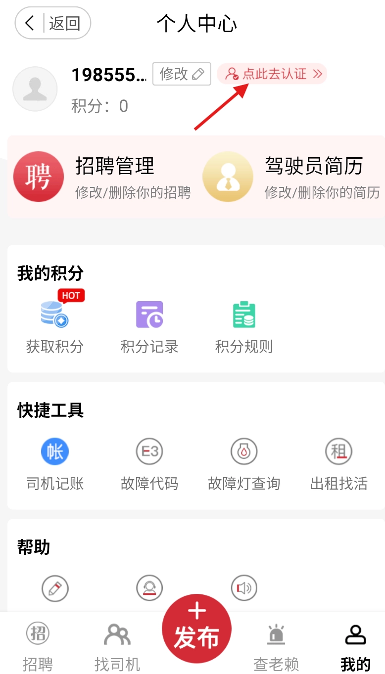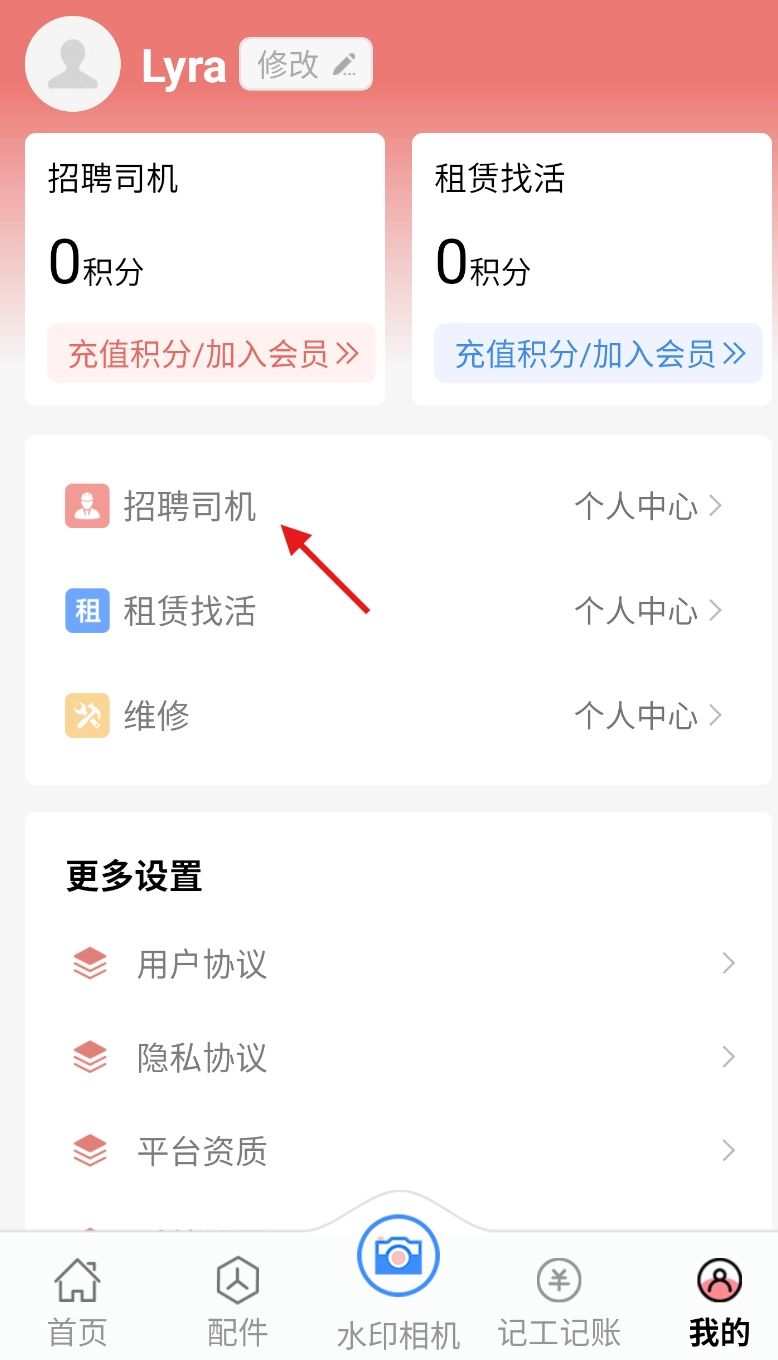 你可以在“我的”页面里,找到“招聘司机个人中心”这个选项并点击它,这样就能进入对应的操作界面了。