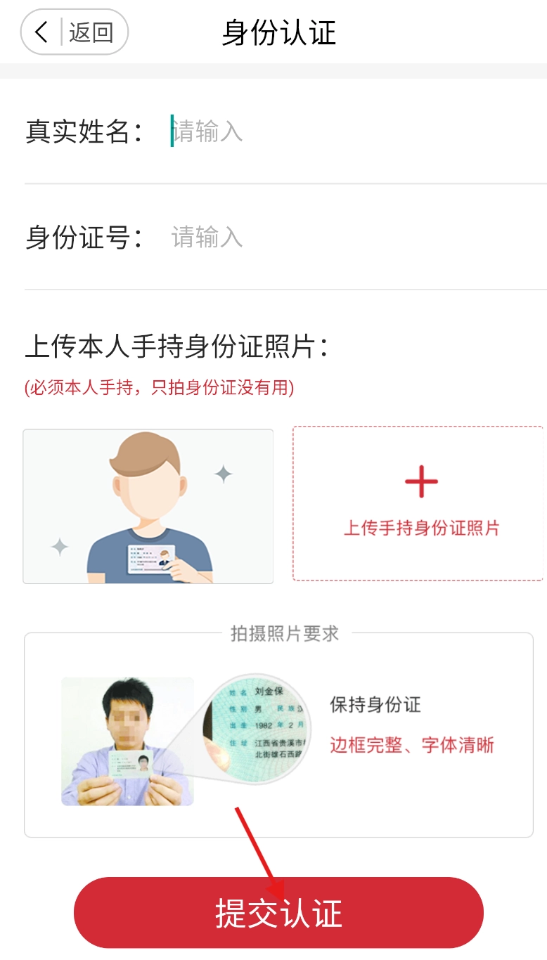 在认证页面准确填写个人身份信息,认真核对确认无误后,点击提交认证按钮,即可完成实名认证流程。