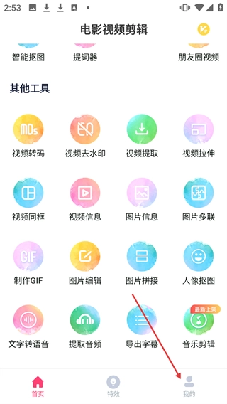 在电影视频剪辑首页点击【我的】,进入个人页面。