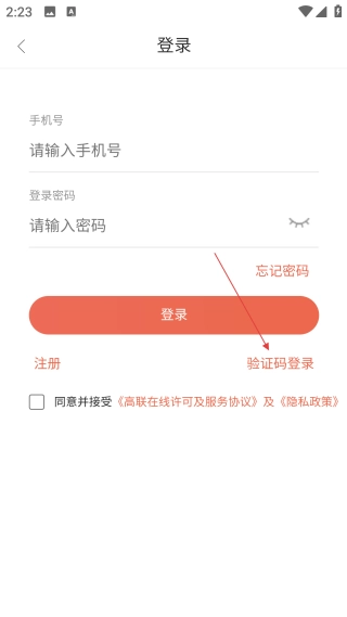 在登录页面,点击【验证码登录】选项,即可切换至验证码登录的信息填写界面。