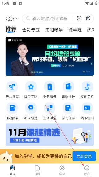 首页设有产品课堂、岗位专区等多样化的学习入口,分类明确、导航方便,帮助用户迅速定位符合自身需求的学习内容。
