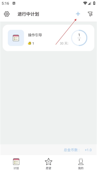 进入首页后,点击页面右上角的【+】按钮,就能开启添加新计划的操作流程。