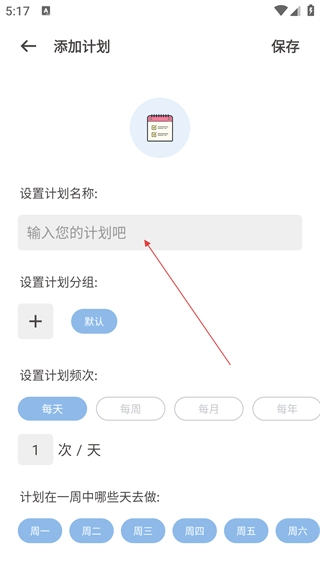 在【添加计划】页面,先填写【设置计划名称】,接着选择分组、频次等相关信息,之后点击【保存】按钮即可。