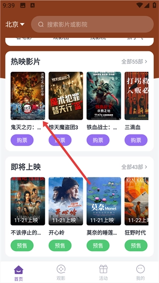 在影片的详情页面,点击底部的“立即购票”按钮。