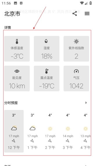 在天气详情页面,你可以查看体感温度、湿度、紫外线指数等信息,从而了解天气变化的具体情况。