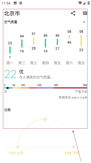 进入空气质量界面后,能【查看北京市空气质量变化情况】,从而享受环境查询服务。