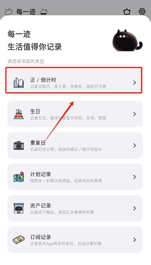 点击加号后,界面会弹出生日、纪念日等多种倒计时类型选项,你可以根据自己的需求挑选合适的类型。