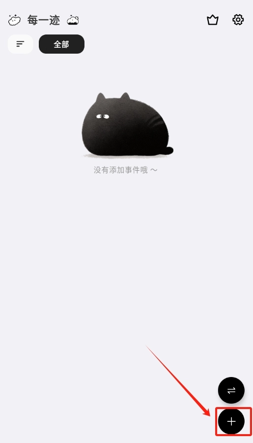 打开每一迹软件,简洁的首页便映入眼帘,在右下角找到加号图标后,直接点击它。