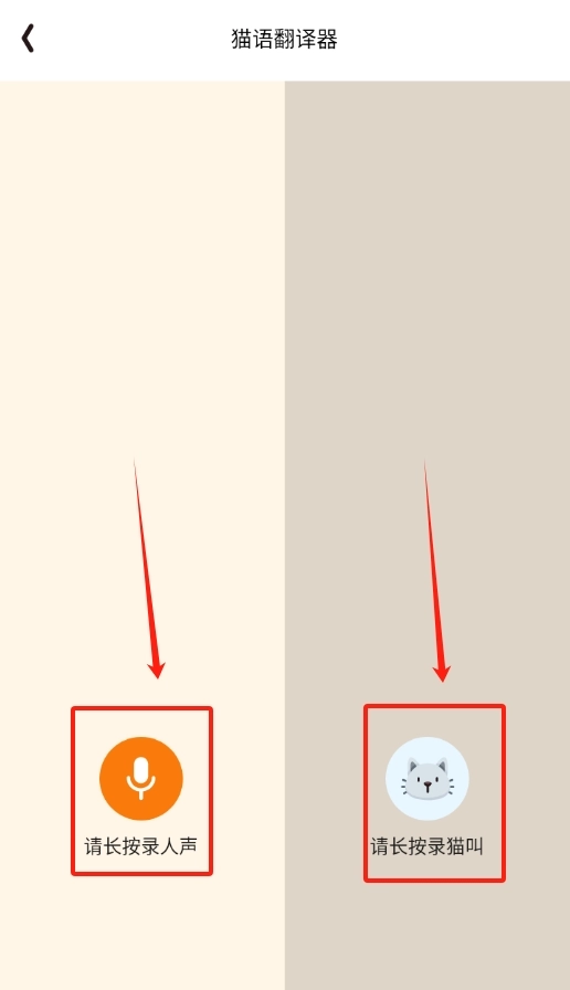 若想和家中的猫咪进行亲密交流,只需点击猫语翻译器,长按录音键,就能完成人声与猫语之间的相互转换。