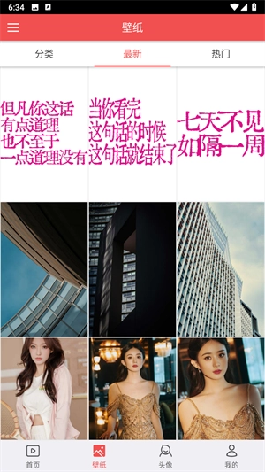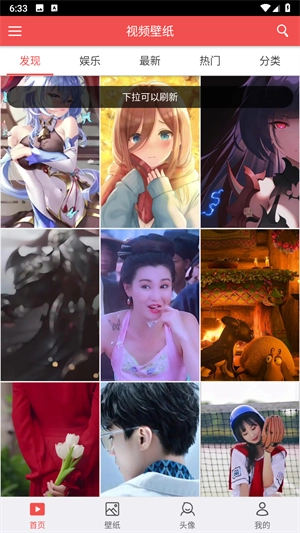 打开软件后直接进入首页,就能看到种类繁多、类型丰富的壁纸。